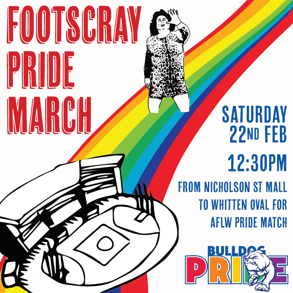 The AFLW’s Pride Match between Carlton & Western Bulldogs at the Whitten Oval is in its third year, and this year rainbows will take over the rest of Footscray, with Bulldog Pride organising the first ever Footscray Pride March.