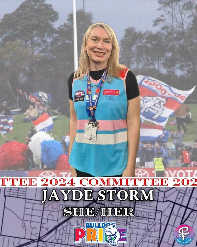 Who: We are a local community group creating a safe space for the LGBTIQA+ community and allies to enjoy the footy. We are a volunteer run group and an official coterie group of the Western Bulldogs Football Club.